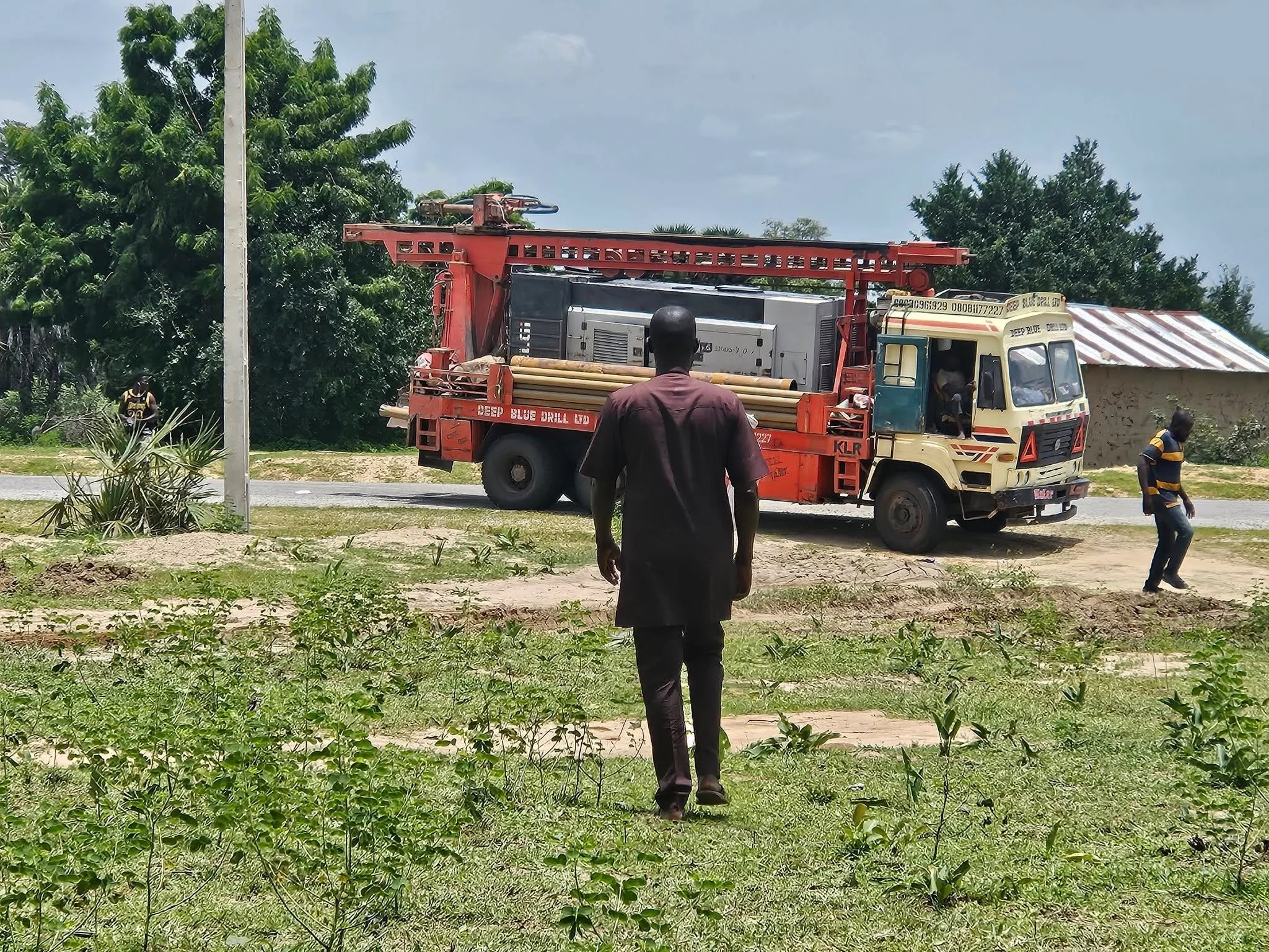 Phyllis and her team waited two whole days for the engineer to arrive at our new school site with his well drilling machine. He never showed. He kept saying he was 'coming'! In Nigeria, "I'm coming" gives a LOT of leeway. It could be in an hour... or a day... or a week. "I'm coming ON THE WAY" however, is a different story! We stand up and peer down the street at "I'm coming on the way"!!! He finally arrived, and the whole village celebrated! He was quickly successful at finding water, Praise God!