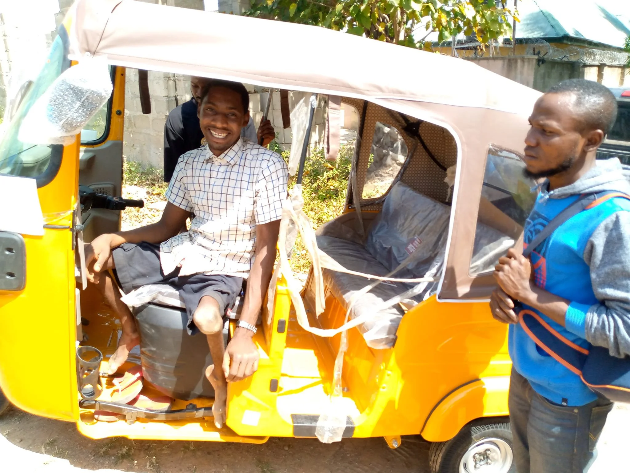 This month, Phyllis delivered a new keke to Salihu! It's pronounced 'keh-keh'! All driving controls, except for the brakes, are done by the hands. We had a mechanic fix the brakes so they also could be applied by hand! Perfect for a young man with withered legs! Salihu received his first keke while in secondary school, a gift from his then ICCM sponsor, also a polio survivor! This new keke is also a gift from this same wonderful man!!