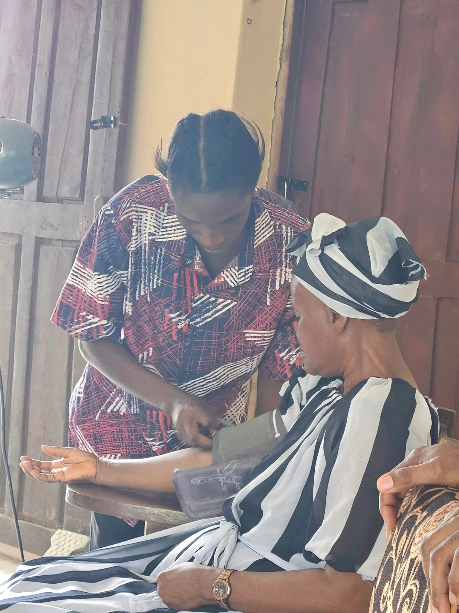 Dr. Godfrey taught in English while Nurse Agnes translated into Yoruba. He taught about hypertension - in Nigeria it's a serious problem due to the use of palm oil in nearly all their food.
