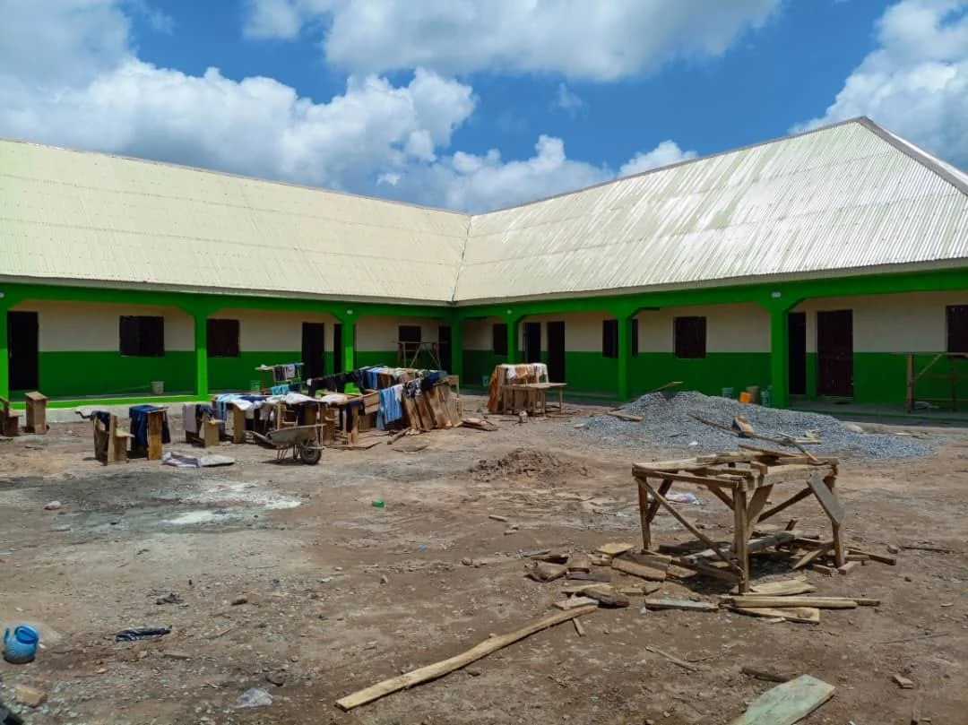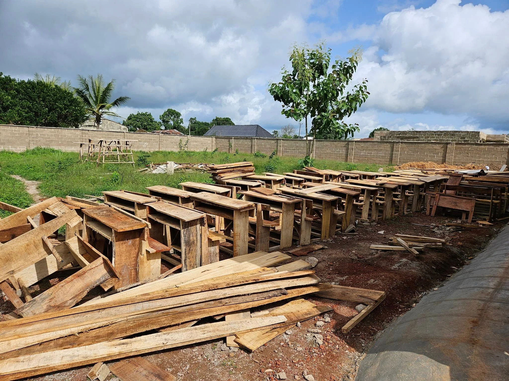 The wall is built around the school for security, gates installed, sidewalks finished and the building painted! Desks were built, and we are ALMOST ready to open in September! Some clean up, desks installed, minor details remain!